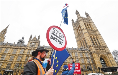 12月10日,反对英国“脱欧”的示威者在伦敦议会大厦前示威。