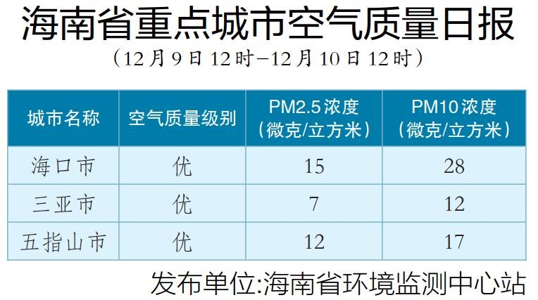 海南省重点城市空气质量日报