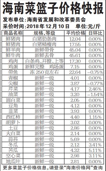 海南菜篮子价格快报