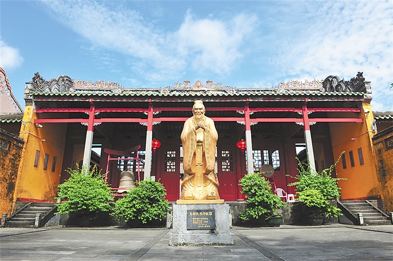 “有朋自远方来,不亦乐乎”“学而不思则罔,思而不学则殆”“知之为知之,不知为不知,是知也”……琅琅的读书声,从有着近千年历史的文昌孔庙传出,这是文昌市孔子学会开办的孔子学堂在上课。时光凝结,昨日再现,隔绝了大门外川流不息的车流,将文昌千年的历史反复播放。不知相隔了多少年,孔庙这座文化圣殿里再次迎来了学习儒学经典的热潮,这是文昌这座城市所具有的独特文化魅力。