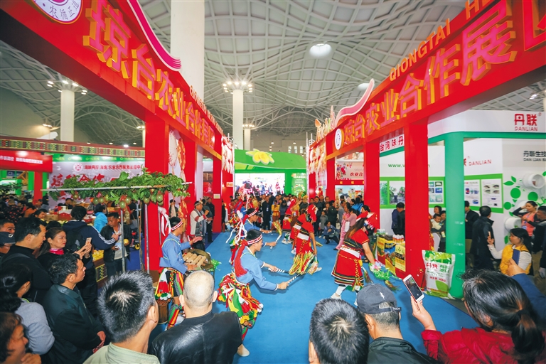 12月14日,冬交会琼台农业合作展区推出节目表演,逛展市民游客纷纷拿起手机拍照。