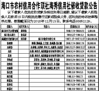 海口市农村信用合作联社海秀信用社催收贷款公告