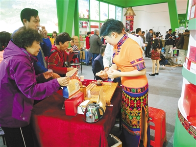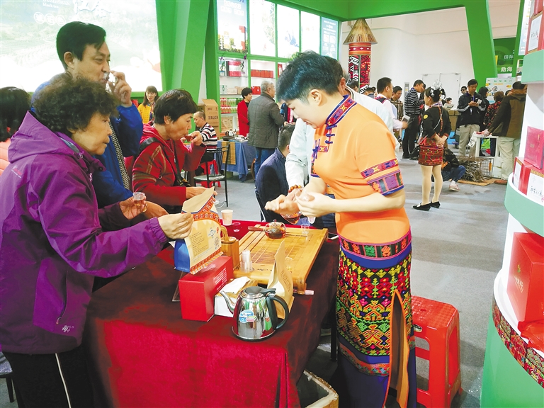 “冬交会开幕这两天来,每天都非常忙,品茶买茶的客户特别多,还有几个外省的客户预约签单,我们正准备将产品包装发给对方,进一步洽谈。”12月13日,五指山印象水满茶叶专业合作社董事长郭琳告诉记者,今年冬交会,到访五指山展馆的新客户很多,茶叶销量不错。