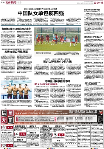 海南日报 文体新闻综合 010 2018-12-161 2018年12月16日 星期日
