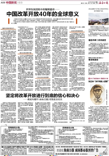 海南日报 中国新闻综合 008 2018-12-161 2018年12月16日 星期日