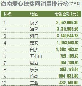 以上排名根据海南爱心扶贫网数据进行统计,统计时间:2018年10月16日至12月16日16时