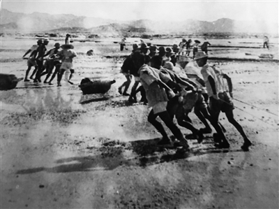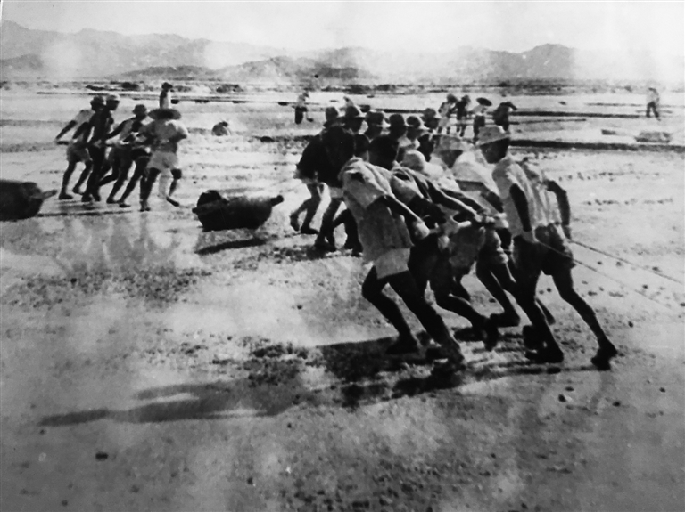 彼时,军事日用逐渐增加,日本政府为了获得军事化学工业原料,迫不及待地进行筹建施工。1942年起,在日本海军特务部的主持下,会同东亚盐业株式会社,对莺歌海地区开展大规模的勘测,计划年产34万至41万吨,并开始抓来劳工施工兴建。