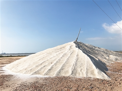 有人说,来到莺歌海盐场,就仿佛到了西藏。抬头仰望,你会看见湛蓝湛蓝的天空,纯净如洗;平视远眺,你可以看见白花花的盐堆,恰似西藏的雪山;走入盐田中央,你会看见纯净碧绿的海水,倒映着天空,好像走进了羊卓雍错。走进盐田深处,你会发现那一抹抹绿色的植被。这里珍稀的植物,犹如青藏高原上的青稞、虫草、格桑花,在这6万多亩的土地上显得非常珍贵。