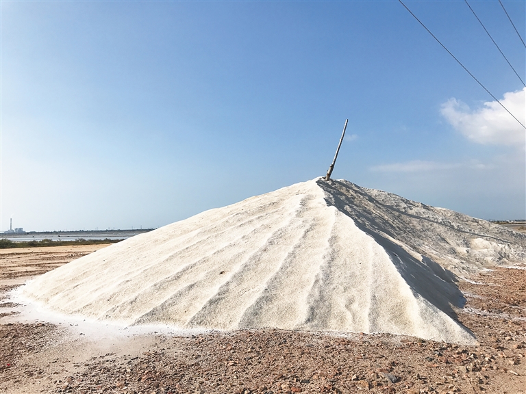 蓝色的天空,白色的盐山,绿色的植物,这是莺歌海盐田三个主色调。盐田,虽然只有60年,但是有些植物,已经在这片土地上生长万年,与盐田共成长的日子,他们有着各自的故事。