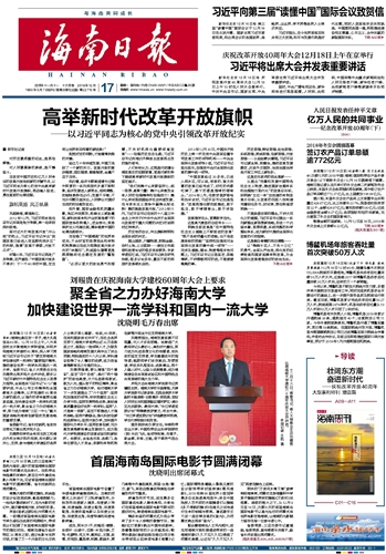 | 海南日报 头版 001 2018-12-171 2018年12月17日 星期一 |
