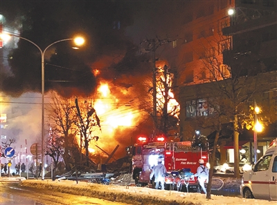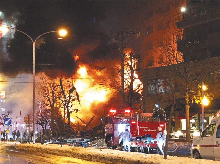 这张从社交媒体获得的视频截图显示的是12月16日日本札幌市的爆炸现场。