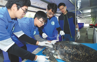 据介绍,海南师范大学“爱的龟途”海龟保护志愿服务项目成立于2013年,由海南师范大学龟鳖研究与保护中心联合911国际海龟救助组织共同创建,致力于南海地区海龟救助保护及公众教育。该志愿服务项目成立至今已救助78只海龟,培训800多名志愿者,服务时长达1万多个小时;累计举办23场大型海龟保护科普宣传活动,并通过微信公众号向大众推送科普文章。