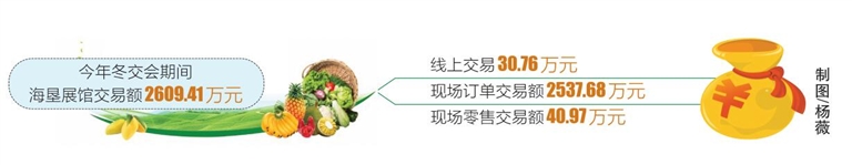 今年冬交会上,海垦南金农场公司带来了菠萝蜜冻干、果脯等新产品,以及多种口味的速冻果浆,销售订单不断。