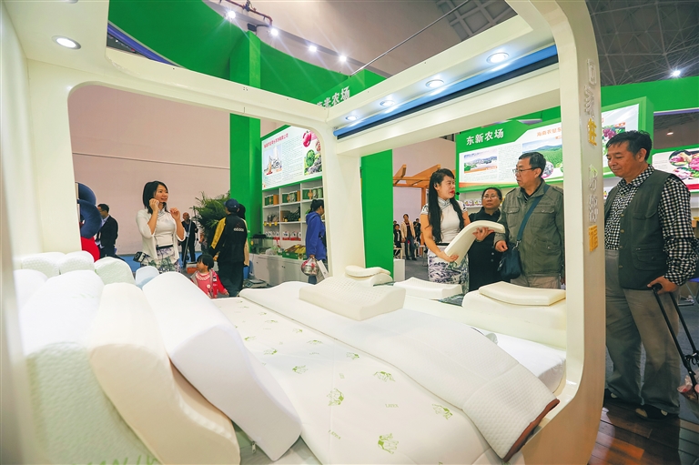 12月16日,在冬交会海垦馆,海胶集团推出“好舒福”系列高端乳胶枕头和床垫产品。这是该集团首次推出乳胶生活用品。本报记者 袁琛 摄