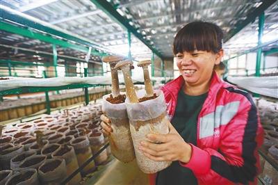 合作社充分利用牙训村和道妙村闲置的废旧厂房,进行猪肚菇、秀珍菇、平菇等各类食用菌的种养培育。闲置已久的厂房成了村里的“聚宝盆”。目前,食用菌生产基地共占地50亩,截至11月中旬,各种菇的产量达300吨,产值达420万元。本报记者 张杰 摄
