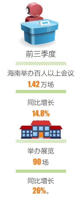 “59国人员入境免签、会展业发展专项资金的扶持以及离岛免税政策的进一步调整,这些利好政策也有力推动了‘会展+旅游’产业发展。”海口鲁能希尔顿酒店宴会销售总监蔡丹说,目前酒店的会展接待已经排到明年2月后,以省外的会议居多。