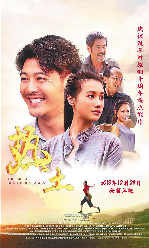 19日在北京人民大会堂举行的首映式上,出品方潇湘电影集团负责人介绍,《热土》讲述了在深圳开了10年出租车的青年田韧返乡创业、成为新时代背景下新型农民的成长历程。