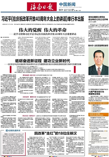| 海南日报 中国新闻 013 2018-12-201 2018年12月20日 星期四 |