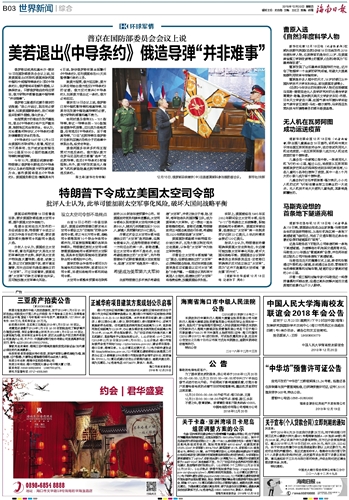 | 海南日报 世界新闻综合 015 2018-12-201 2018年12月20日 星期四 |
