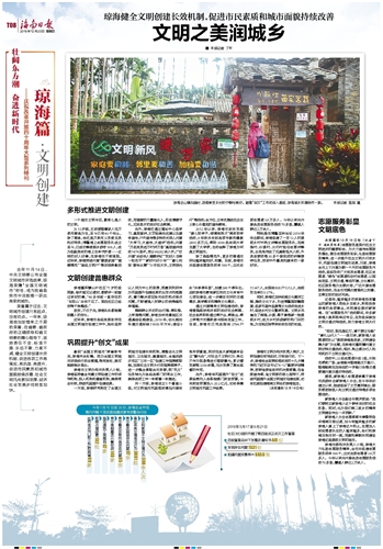 | 海南日报 壮阔东方潮 奋进新时代 庆祝中国改革开放四十周年大型系列特刊·琼海篇·文明创建 028 2018-12-201 2018年12月20日 星期四 |