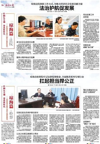 | 第031版:壮阔东方潮 奋进新时代 庆祝中国改革开放四十周年大型系列特刊·琼海篇·法院·检察 |