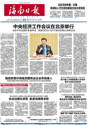 海南日报 头版 001 2018-12-221 2018年12月22日 星期六