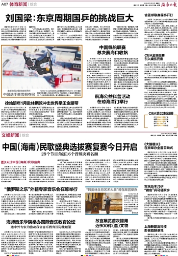 海南日报 体育新闻 文娱新闻 007 2018-12-221 2018年12月22日 星期六