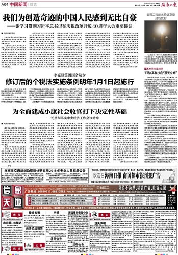 海南日报 中国新闻综合 004 2018-12-231 2018年12月23日 星期日