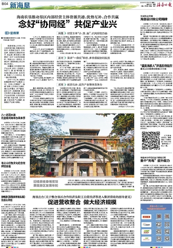 体量庞大的海南农垦产业众多,却在一定程度上存在“小、散、弱”等问题,如何通过整合资源、协同发展,发挥1+1>2的效应,是一道必答的考题。