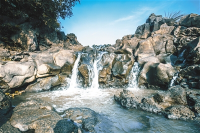 走入百仞滩,随处可见小溪流淌、泉水叮咚的美景。这里的景致自然形成,没有丝毫人为的华丽,更有一丝淳朴的味道。偶尔在丛林里,可见古人们搭建的过河石桥,走在铺满一层绿意的石板上,脚踩青苔,嗅到的是林子里草木的清新。