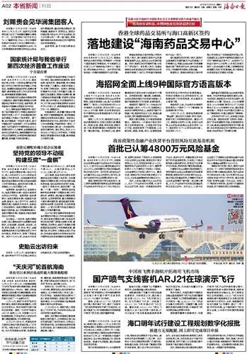 海南日报报业集团旗下媒体: 海南日报 |南国都市报 |南海网 |南岛晚报 |证券导报 |法制时报 |海南农垦报 设为首页