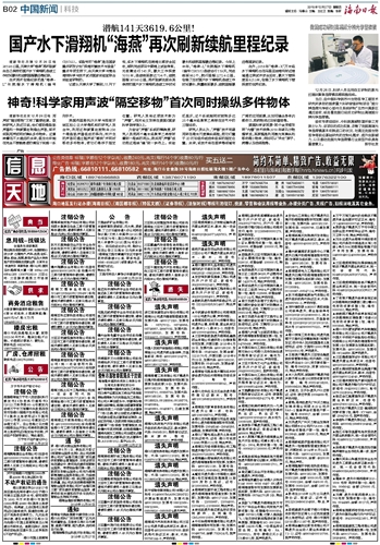 国产水下滑翔机“海燕”再次刷新续航里程纪录