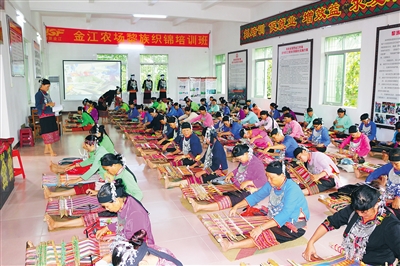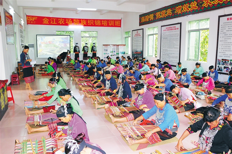 地处保亭黎族苗族自治县境内的金江农场公司是垦区国有贫困农场公司之一。近年来,在脱贫攻坚战中,金江农场公司选择独特产业脱贫的方式,成立黎锦联社帮扶基地,大力发展黎族织锦,引导困难职工发展传统手工艺增收,探索出了一条造血扶贫的新路子。今年,联社销售黎锦产品125件,销售额达29万余元。