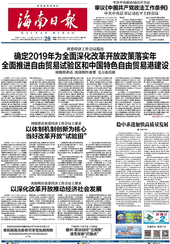 | 海南日报 头版 001 2018-12-281 2018年12月28日 星期五 |