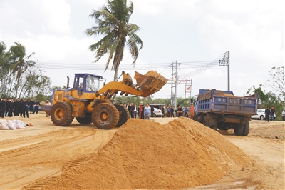“村民正是利用这些蛇皮袋、水泥袋,采取‘蚂蚁搬家’的手法,将南渡江中的砂一袋袋运到该据点,再整车出售。”秀英区水政监察大队科员陈玉志说,这些非法堆积的砂将通过运输车被再度送回南渡江。此次行动共排查8个自然村,清理非法堆砂点46处,清理非法堆砂量330立方米,查处两辆中型自卸货车。