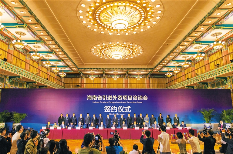 今年9月6日,北京,海南省引进外资项目洽谈会签约仪式现场高朋满座、名企云集。现场26个外资项目签约,普华永道、德勤、安永、毕马威、戴德梁行、世邦魏理仕、英国哈罗公学、淡马锡、英国默林娱乐集团、美国三五环球集团、香港太平健康集团等纷纷签下合作项目进驻海南。