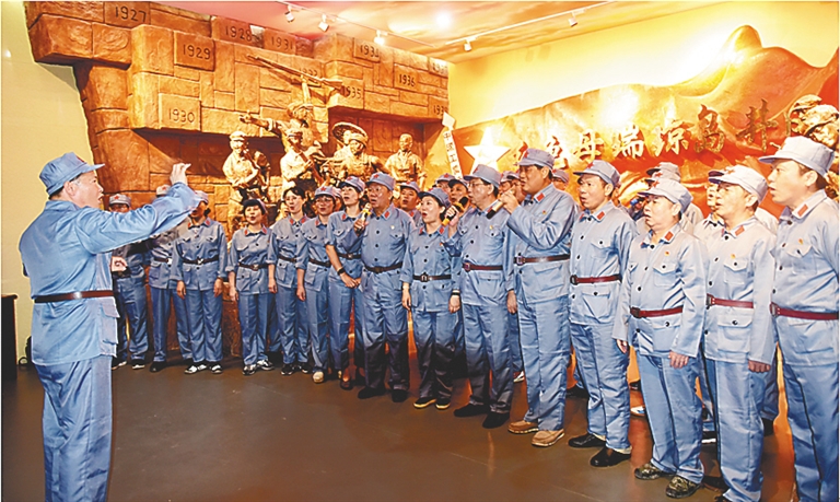 例如,通过组织学员到母瑞山革命旧址遗迹现场进行革命传统现场教学活动,回顾中国共产党在母瑞山斗争时期的奋斗历史;组织学员统一穿红军服,进行授旗授番、缅怀先烈、重走红军路等体验式教学活动,让学员感受1928年至1933年,为了粉碎敌人的两次围剿,红军如何自力更生、艰苦奋斗。