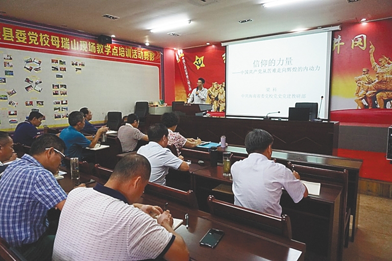 为了推动不同区域教学点特色化、品牌化、差异化发展,提升教学培训吸引力、感染力,省直机关工委统一协调,指导教育基地精神内涵挖掘,因地制宜地推动定安县母瑞山教育基地对教育资源挖掘工作,深挖历史文脉,讲好海南故事,丰富教育基地新内涵。