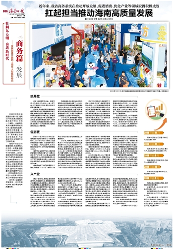 | 海南日报 壮阔东方潮 奋进新时代 庆祝中国改革开放四十周年大型系列特刊·商务篇·发展 022 2018-12-291 2018年12月29日 星期六 |