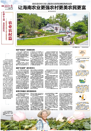 | 海南日报 壮阔东方潮 奋进新时代 庆祝中国改革开放四十周年大型系列特刊·农业农村篇 024 2018-12-291 2018年12月29日 星期六 |