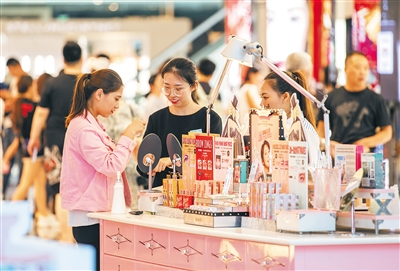 图③:顾客在三亚国际免税城选购商品。离岛免税政策的实施,有效拉动海南高端消费。