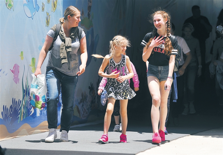 图⑤:59国人员入境旅游免签新政实施后,5月29日,载有160多名俄罗斯游客的Y7515航班降落三亚凤凰机场。本报记者 袁琛 摄