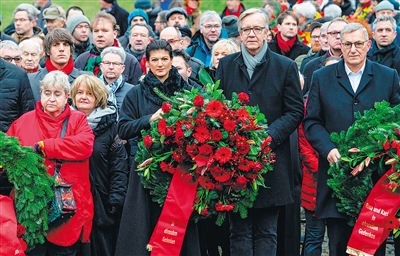 柏林当天冬雨绵绵,气温接近零摄氏度。纪念活动主要由德国左翼党组织。当天早上,左翼党双主席卡特娅·基平和贝恩德·里克辛格与上万民众一起从法兰克福门广场步行5公里来到位于柏林市区东部的社会主义者公墓墓地,参与者也有来自西班牙、法国和古巴等地的民众。
