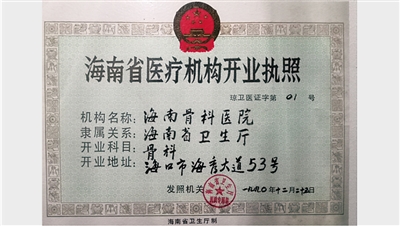1990年12月25日,经海南省卫生厅批准更名为“海南骨科医院”,为海南骨科医院颁发了海南省医疗机构开业执照(琼卫医证字第01号),并由何氏骨科第六代传人汤义成先生接任院长。