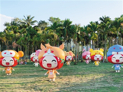 “大家好,我是人见人爱的小甜甜,来自陵水光坡镇,红润饱满、色泽鲜亮、形态均匀。”开幕式上,介绍陵水圣女果的动画片引人驻足观看。舞台不远处,一个个憨态可掬的圣女果卡通形象造型吸引市民和游客拍照留念。