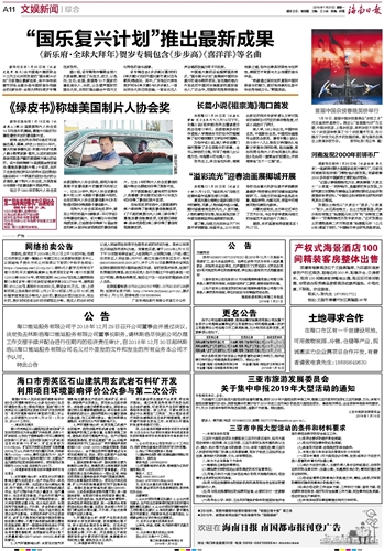 海南日报 文娱新闻综合 011 2019-01-211 2019年01月21日 星期一