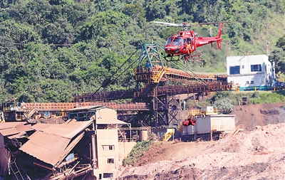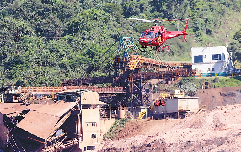 1月30日,在巴西布鲁马迪纽,一架救援直升机运送溃坝事故遇难者遗体。