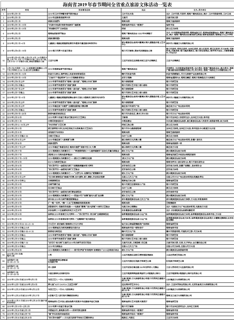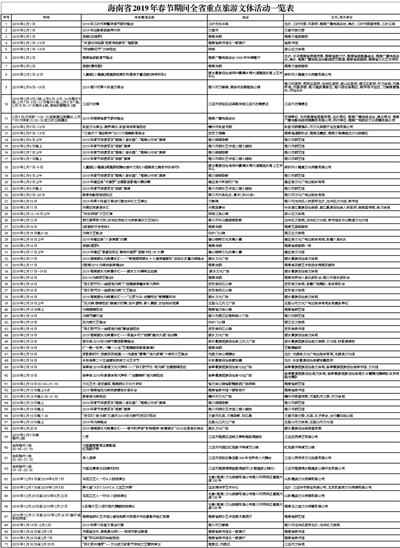 海南省2019年春节期间全省重点旅游文体活动一览表