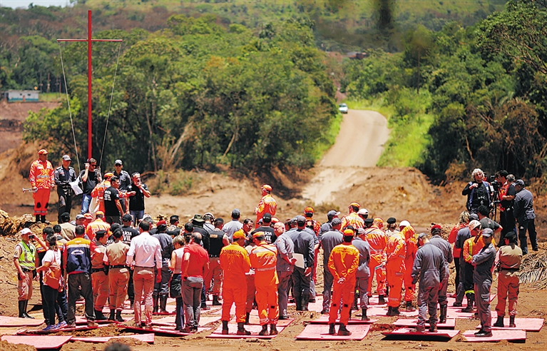 2月1日,在巴西布鲁马迪纽,救援人员举行集会为遇难者和失踪者祈祷。