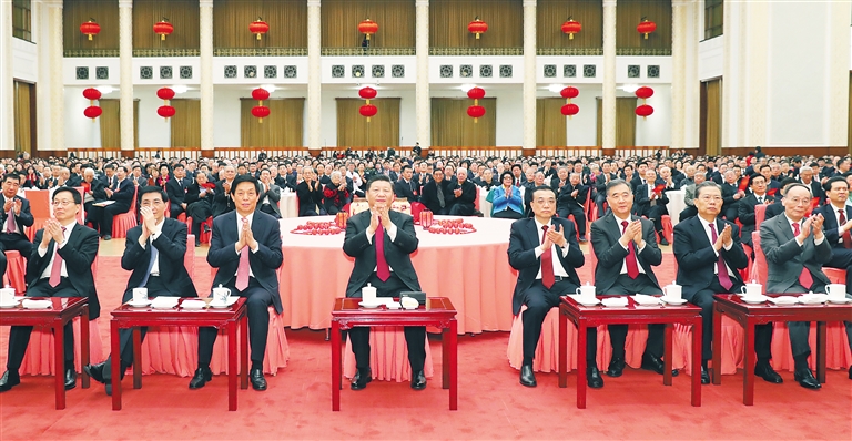 党和国家领导人李克强、栗战书、汪洋、王沪宁、赵乐际、韩正、王岐山等出席团拜会,李克强主持。